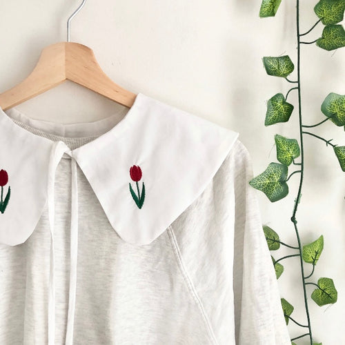 Polkadot Print Cotton Removable Collar, Sailor Collar